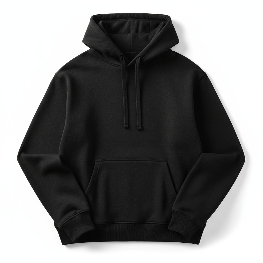 A clean black hoodie crafted for comfort and everyday wear. Soft cotton blend with a relaxed fit that defines effortless style.